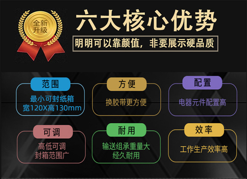 - 不同尺寸規(guī)格:可通過(guò)調(diào)節(jié)適應(yīng)不同大小的箱子,無(wú)論是較小的快遞紙箱還是較大的工業(yè)包裝箱,都能進(jìn)行有效的封箱和打包1.
