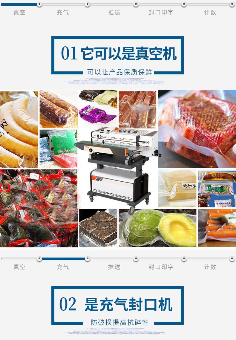 - 多功能集成:除單純真空包裝外,部分機型還具備充氣功能,在抽完真空后往包裝袋內充入氮氣、二氧化碳等惰性氣體,進一步提升產品保鮮、防氧化效果。