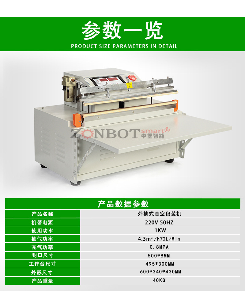 電動外抽真空包裝機(jī)是一種通過外部抽氣方式實現(xiàn)包裝袋內(nèi)真空環(huán)境的設(shè)備,廣泛應(yīng)用于食品、醫(yī)藥、化工、電子、紡織等行業(yè)。其核心功能是通過抽氣和封口技術(shù),延長產(chǎn)品保質(zhì)期、減少運(yùn)輸體積,并提升包裝美觀度。