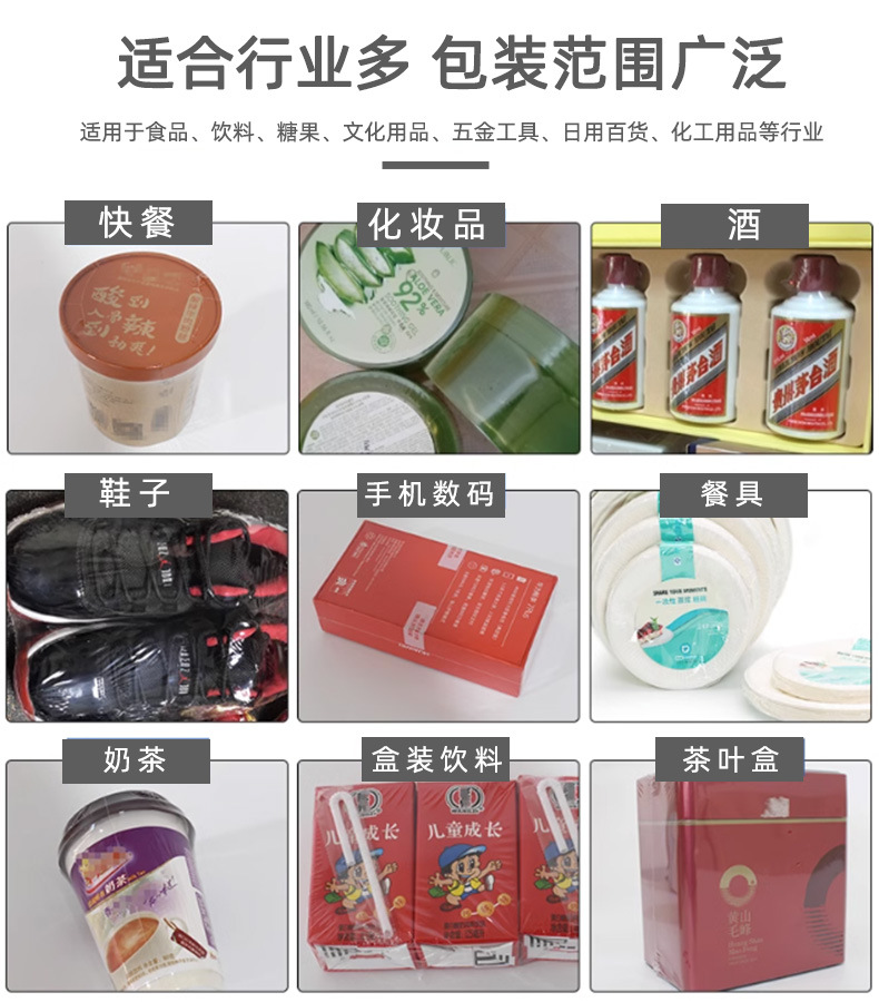 - 適用包裝材料:常見的有 PE(聚乙烯)膜、POF(聚烯烴收縮膜)、PVC(聚氯乙烯)膜等,不同的包裝材料具有不同的特性和適用范圍,設(shè)備可能對(duì)特定類型或厚度的包裝材料有較好的兼容性。