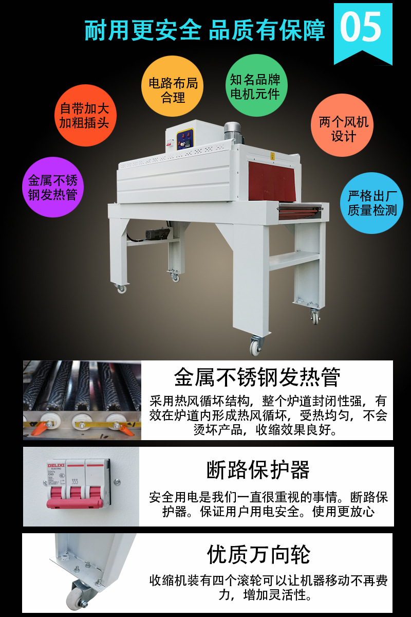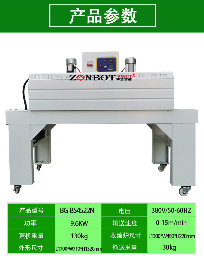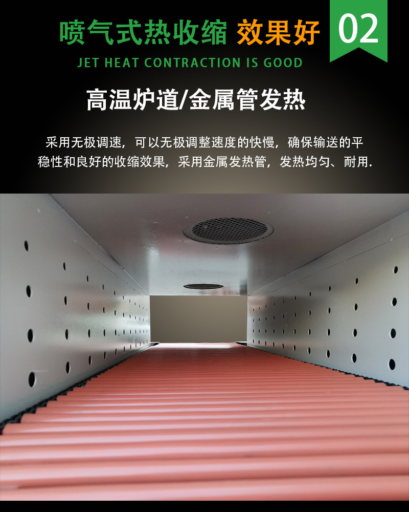 它的工作原理是利用熱收縮薄膜在受熱狀態(tài)下會(huì)收縮的特性,將產(chǎn)品用薄膜包裹后進(jìn)行加熱,使薄膜緊緊貼合在產(chǎn)品表面,從而達(dá)到包裝、保護(hù)和美化產(chǎn)品的目的。