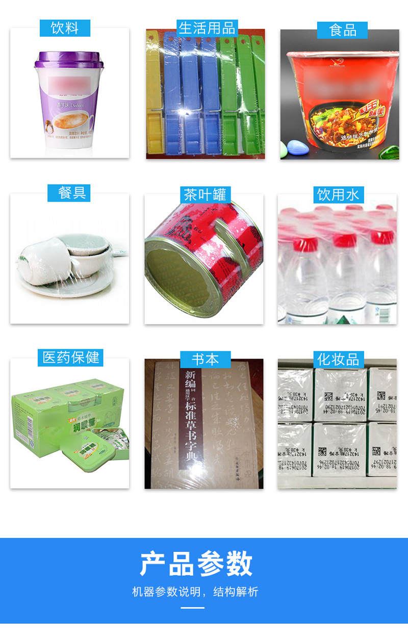 - 包裝洗發水、沐浴露、化妝品、洗滌劑等產品。熱收縮包裝能夠提升產品的外觀形象,吸引消費者的購買欲望。