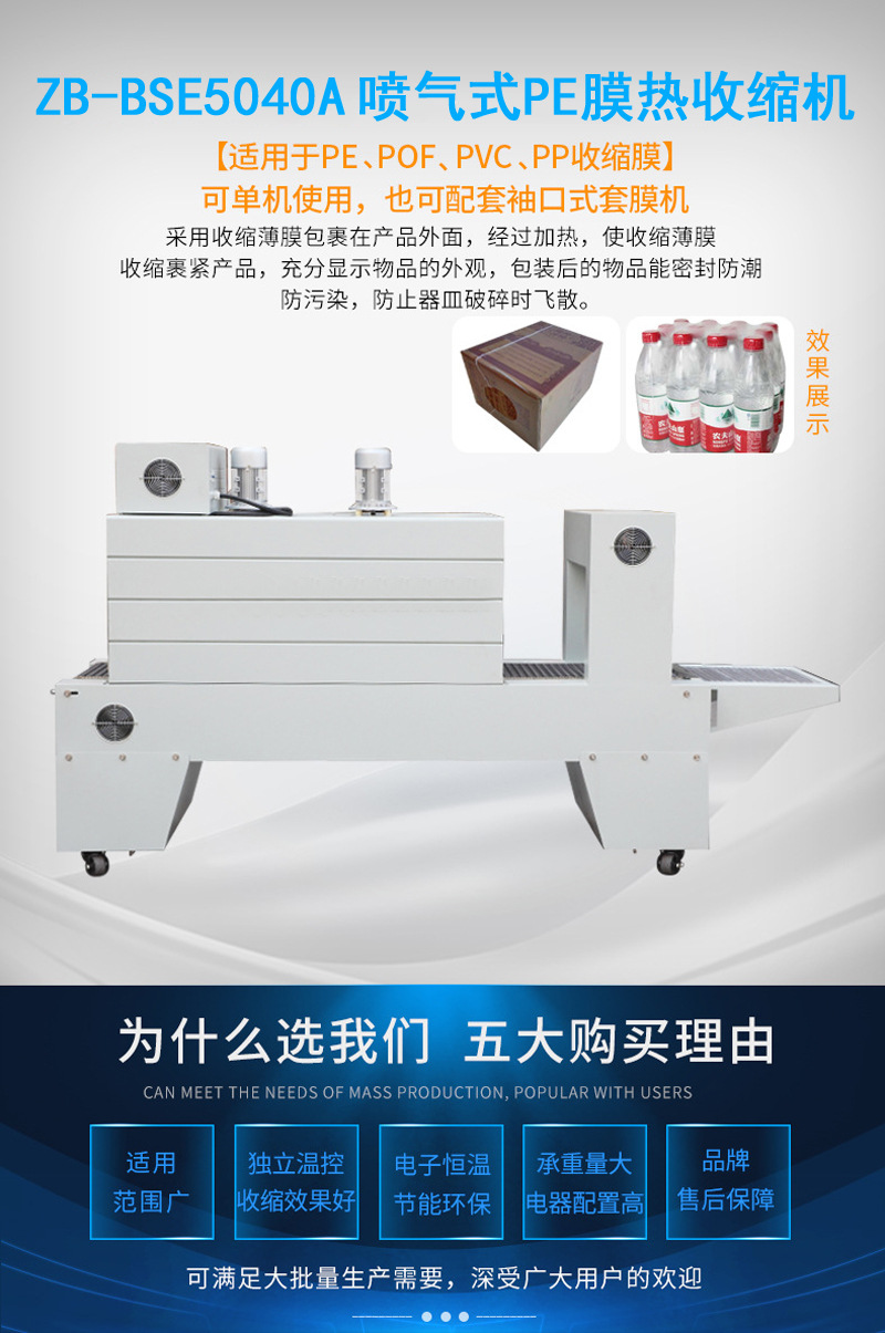 - 兼容多種包裝膜:可使用多種類型的熱收縮膜,如 PVC、POF、PE 等,企業可根據產品特性、包裝成本和市場需求選擇合適的膜材。