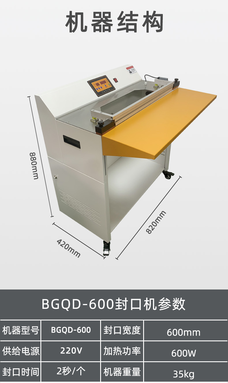 - 適用范圍廣:可適用于各種塑料薄膜、復合膜等包裝材料的封口,廣泛應用于食品、醫藥、化工等行業。
