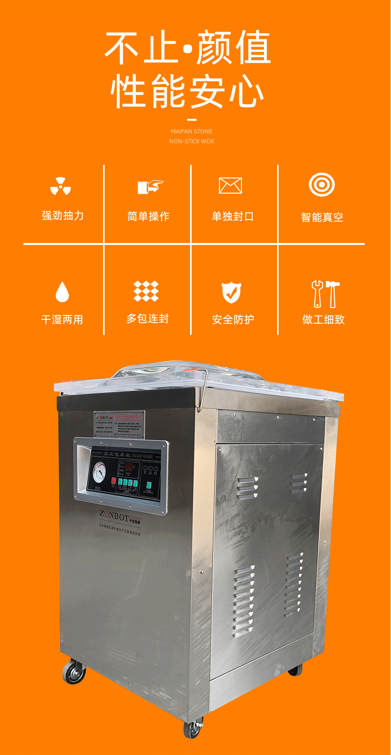 - 體積小巧:相較于雙室或多室真空包裝機(jī),單室真空包裝機(jī)的體積較小,占地面積少,適合在空間有限的場(chǎng)所使用,如小型門(mén)店、家庭等