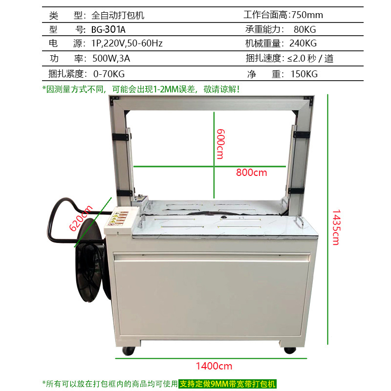 - 家電產品在生產完成后,無論是大型家電如冰箱、洗衣機,還是小型家電如電水壺、電吹風等,都需要進行包裝和捆扎。自動捆扎機可以根據家電產品的大小和重量,選擇合適的打包帶(如塑料帶或聚酯帶)對產品的包裝箱進行捆扎。對于大型家電,捆扎機可以確保包裝箱在搬運和運輸過程中不會散開,保護產品不受損壞。