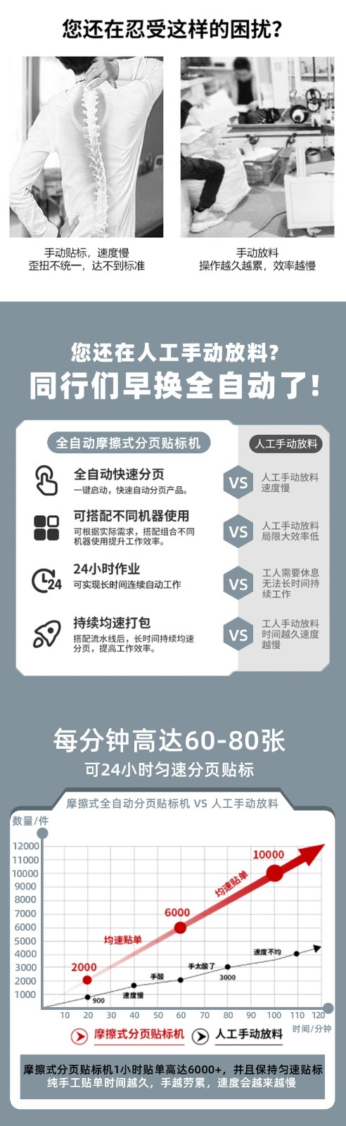 如此高效的連續、快速分頁和貼標操作,為企業帶來了顯著的人力成本縮減。以往依靠大量人工進行分頁和貼標的工作模式,不僅耗時費力,而且極易因人工疲勞等因素導致操作速度減緩以及貼標誤差增加。如今,全自動分頁貼標機投入使用后,原本需要數十名甚至上百名工人才能完成的工作量,現在僅需少數幾名技術人員進行設備監控與維護即可。這大大減少了人工操作所耗費的時間,從原本需要數小時甚至數天才能完成的大規模貼標任務,縮短至短短幾十分鐘或數小時內就能高效完成。