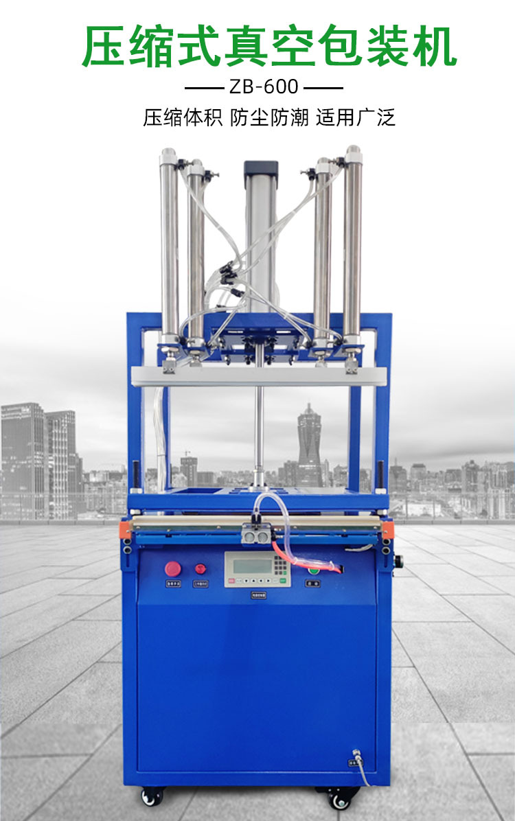 真空壓縮包裝機在抽真空的同時或之后,利用機械裝置或氣壓裝置對包裝袋進行壓縮,將物品緊密地壓縮在一起,進一步減小包裝體積