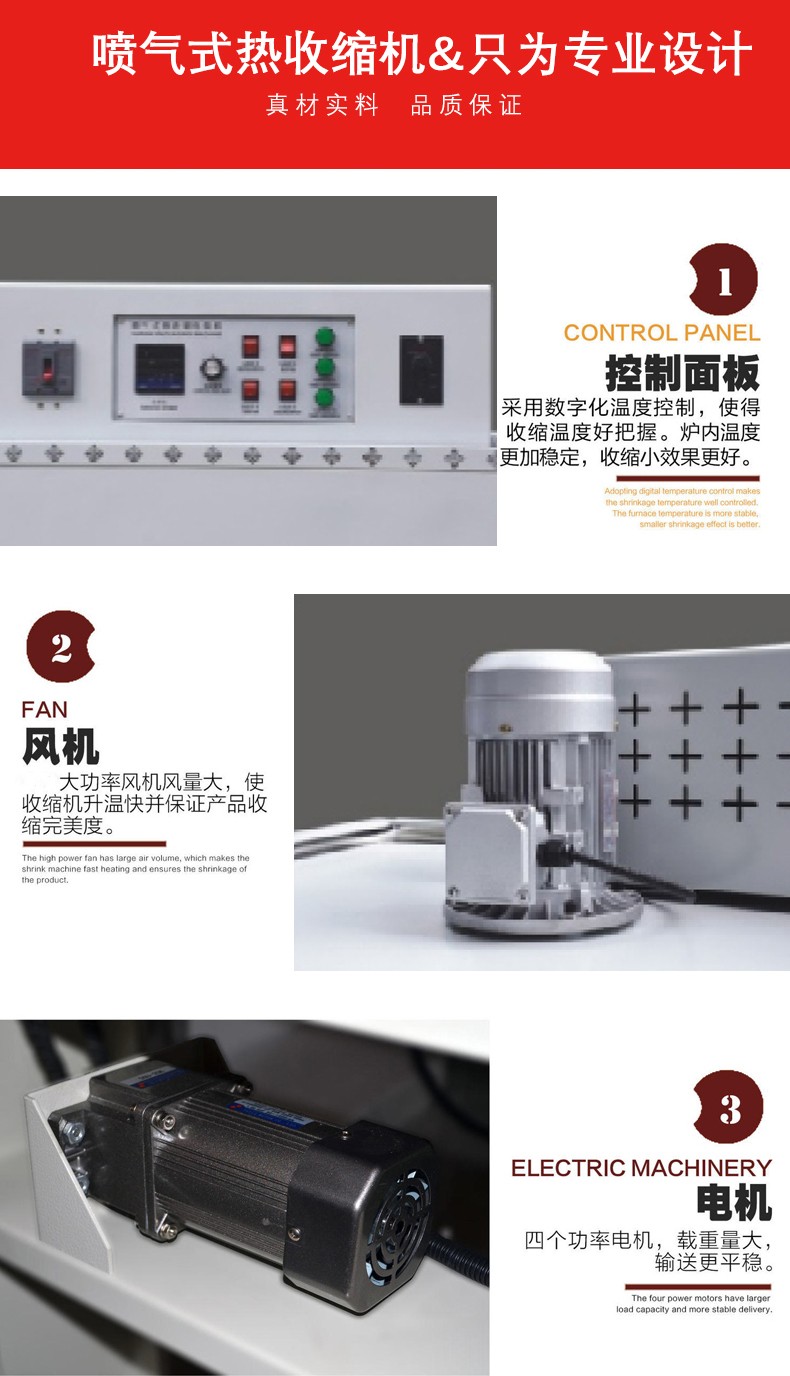 噴氣式熱收縮機是一種利用熱空氣噴射技術,使包裝材料(通常是熱收縮薄膜)緊密包裹產品的包裝設備。它通過將熱空氣均勻地噴射到包裹產品的薄膜上,使薄膜收縮,從而達到貼合產品輪廓、美化包裝外觀并且起到保護產品的作用。