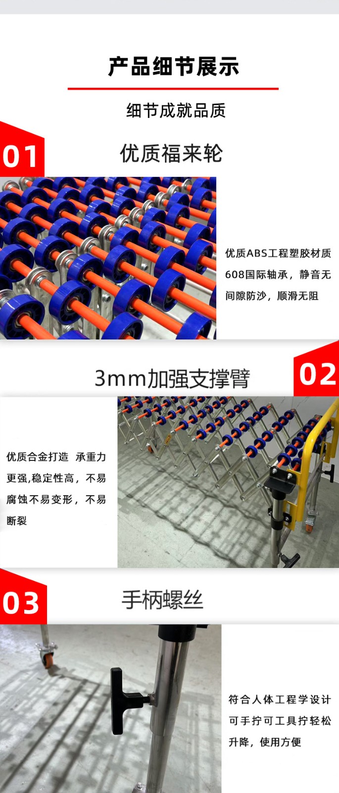 - 通用性強:能夠輸送各種形狀的物體,只要物體底部相對平整,就可以在滾輪上滾動輸送,無論是方形的箱子、圓形的桶還是其他不規則形狀的物品(在一定范圍內)。