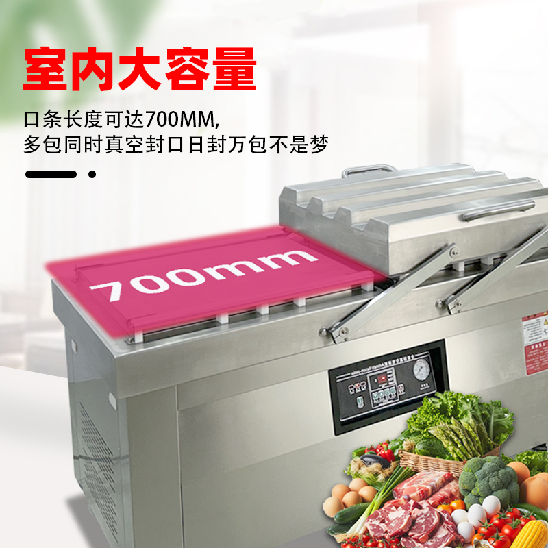 雙室真空包裝機通過 “雙真空室輪換作業” 實現抽真空與裝袋無縫銜接,核心是利用兩個獨立真空室的 “時間差并行操作”,讓設備在同一周期內同時完成 “抽真空密封” 和 “人工 / 自動裝袋”,徹底消除單室機型 “抽真空時無法裝袋” 的等待間隙,大幅提升作業效率。其具體運作邏輯和優勢可拆解為以下 3 點: