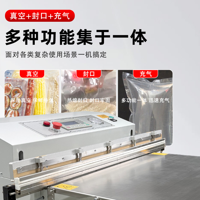 - 適配多場(chǎng)景:支持 PE、PA、鋁箔等多種包裝材料,可切換 “真空封口”“充氣保鮮” 兩種模式,兼顧工業(yè)防銹與食品保鮮需求。