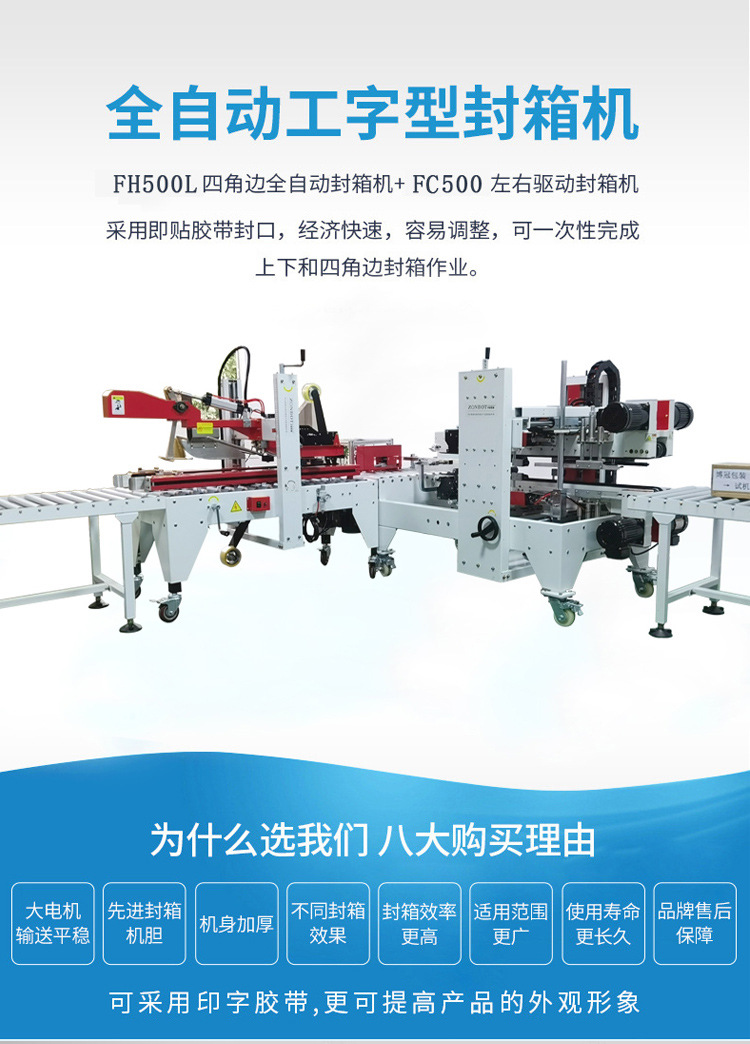 BG-FH500L+FC500自動折蓋工字型封箱機 四角邊自動感應無人化封箱機
