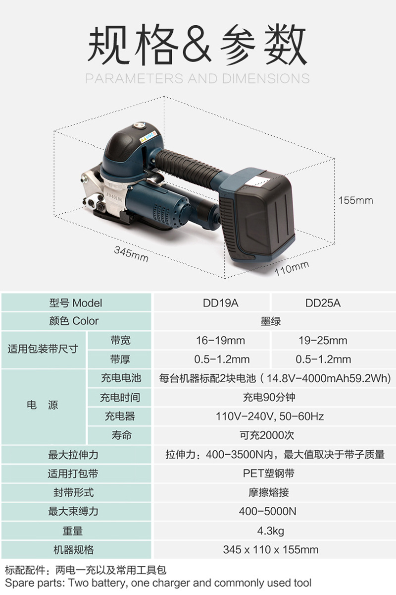ZB-DD19A手提式電動打包機大拉力熱熔全自動PET塑鋼帶打包機